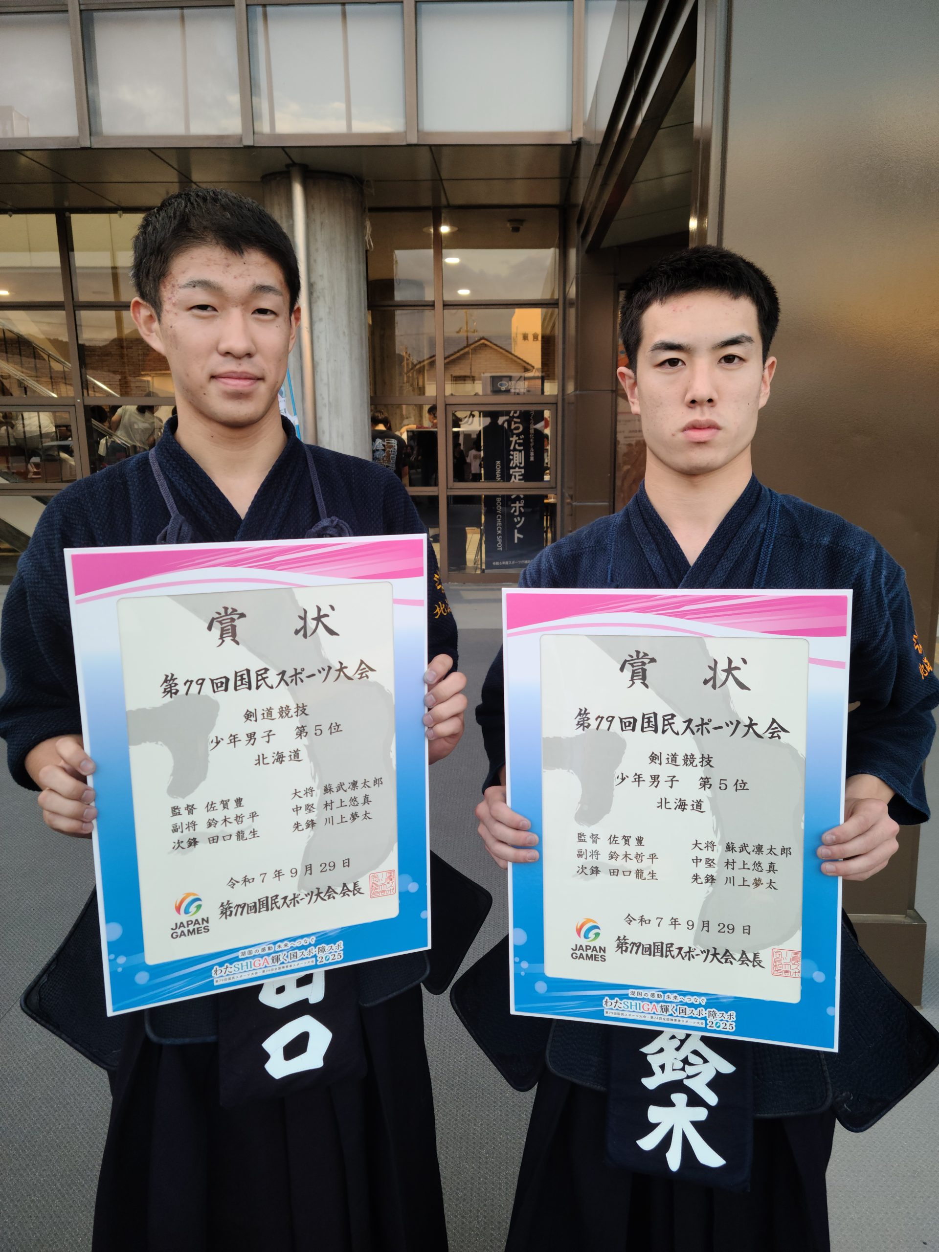 少年男子の部(団体戦5人制)に、北海道予選を勝ち抜いた、山田心(3年)、長崎遥真(3年)、及川竜弥(3年)、安ケ平慎太朗(3年)の4名が、団体戦の選手(先鋒、次鋒、副将、大将)として出場しました。