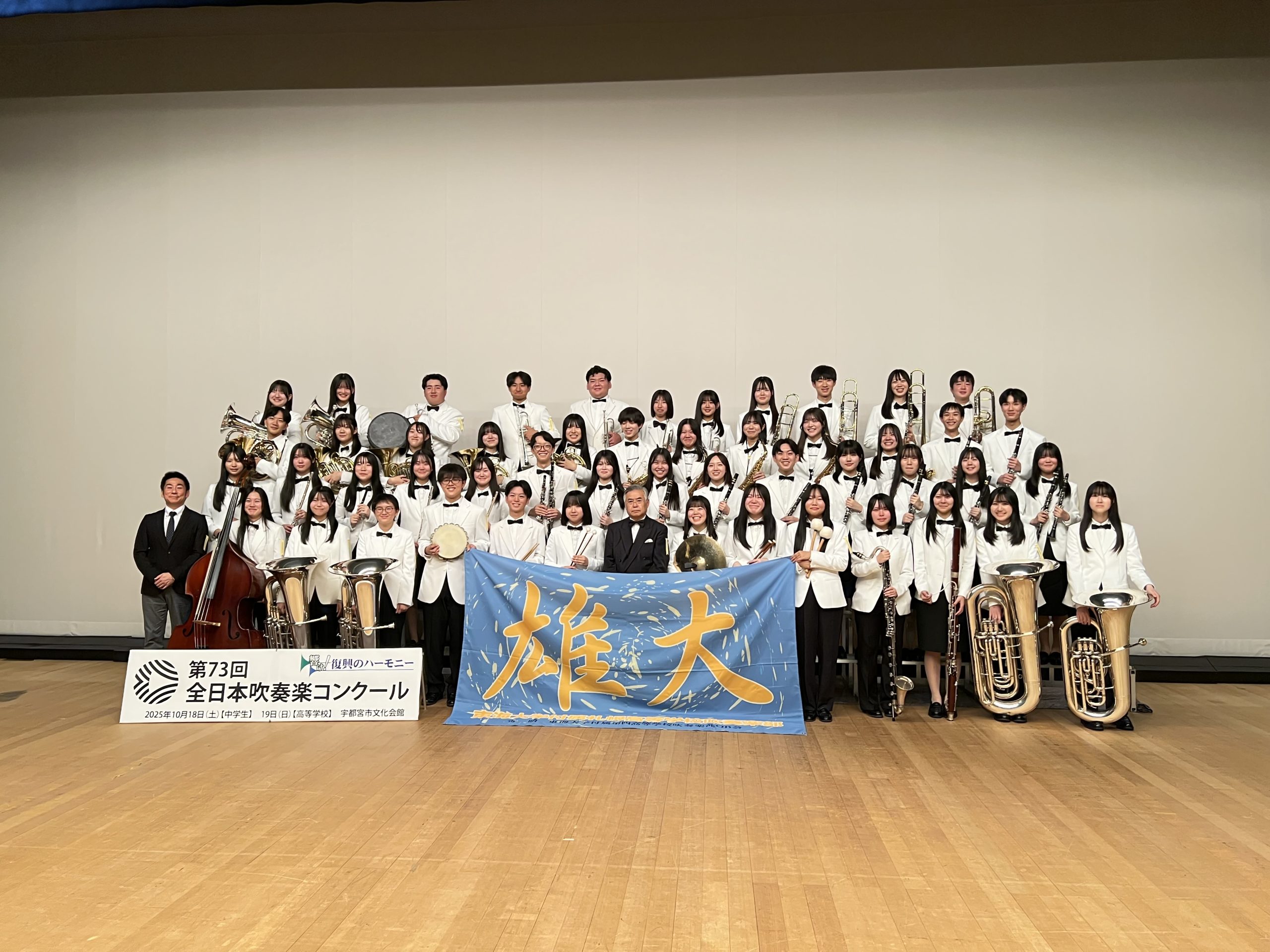 10月19日(日)、栃木県にあります宇都宮市文化会館にて第73回全日本吹奏楽コンクールが開催され、銅賞を受賞いたしました。今回で連続42回の全日本出場となりました。 沢山の皆様からのご声援、ご協力を賜り厚く御礼申し上げます。これからも皆様に感動いただける演奏をお届けできるよう、練習に励んでまいります。引き続き応援のほど宜しくお願い申し上げます。