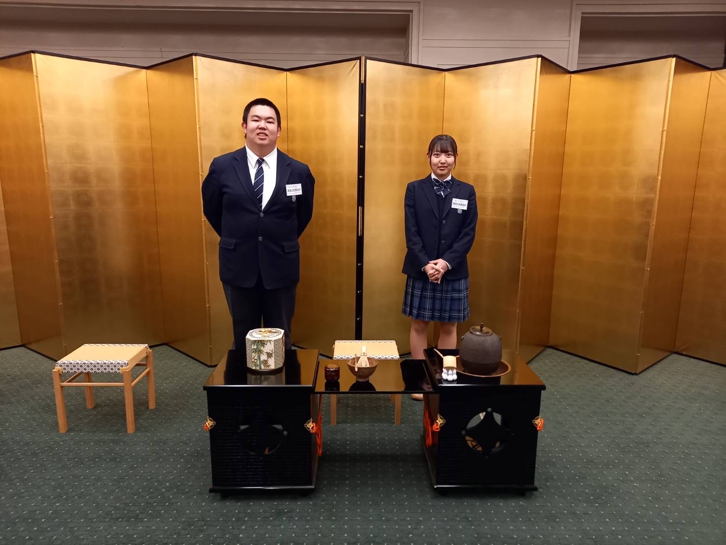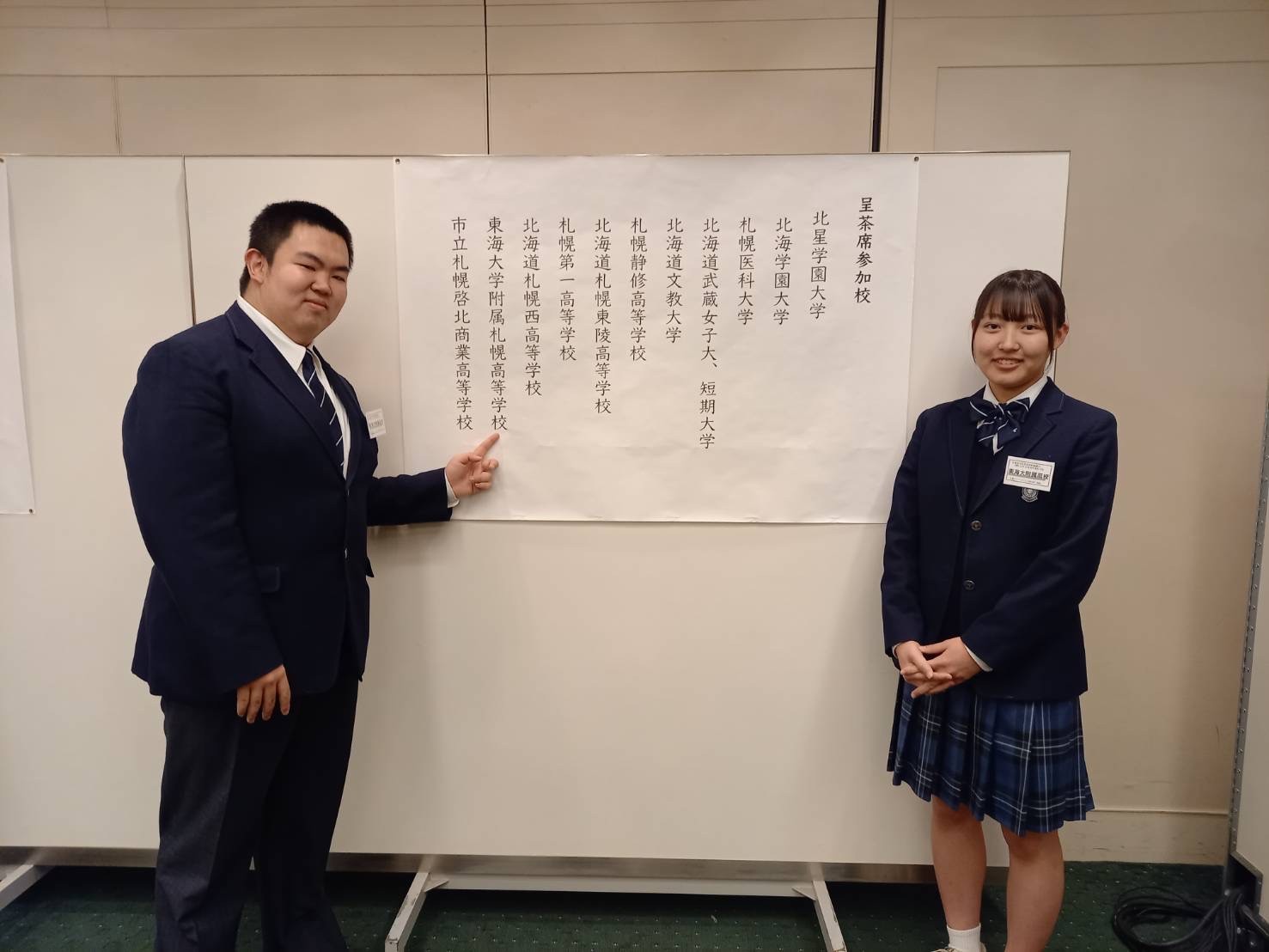 10月25日(土)、札幌グランドホテルで北海道学校茶道連絡協議会第25回研修会が開催され、茶道部の3年3組田村香奈子さんと3年7組八谷一生くんが参加してきました。全道から学校茶道指導者が集まる研修会で、市内で茶道部のある大学や高校の学生・生徒と一緒に「呈茶席」を体験することができました。3年間部活動を続けてきた二人は、最後に大きな行事に参加して貴重な経験ができたことを喜んでいました。