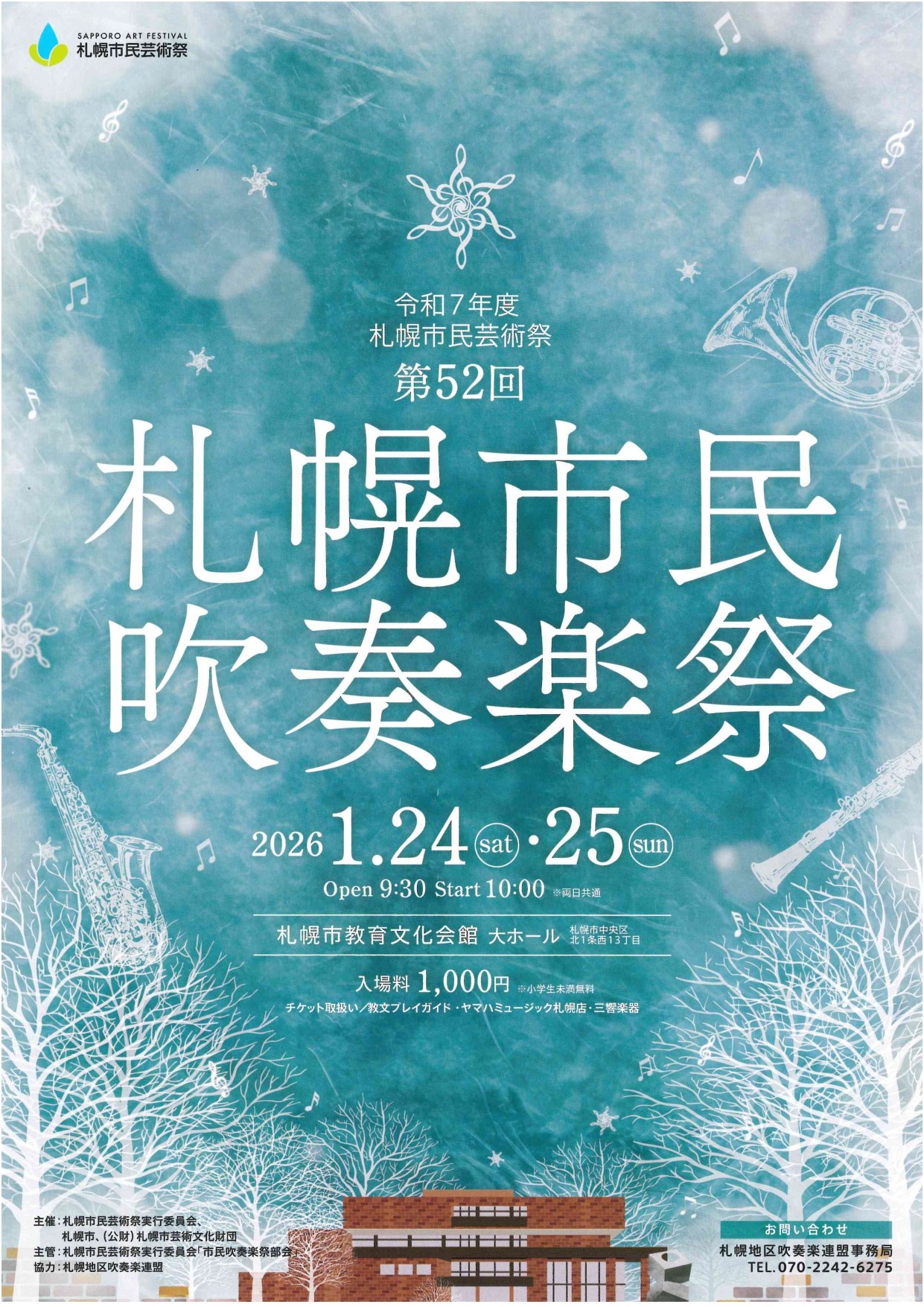 1月24、25日に札幌市教育文化会館で開催されました「第52回 札幌市民吹奏楽祭」に出演いたしました。(私達は24日に出演いたしました) 寒くお足元の悪い中、沢山のお客様にご来場いただき誠にありがとうございました。 厚く御礼申し上げます。