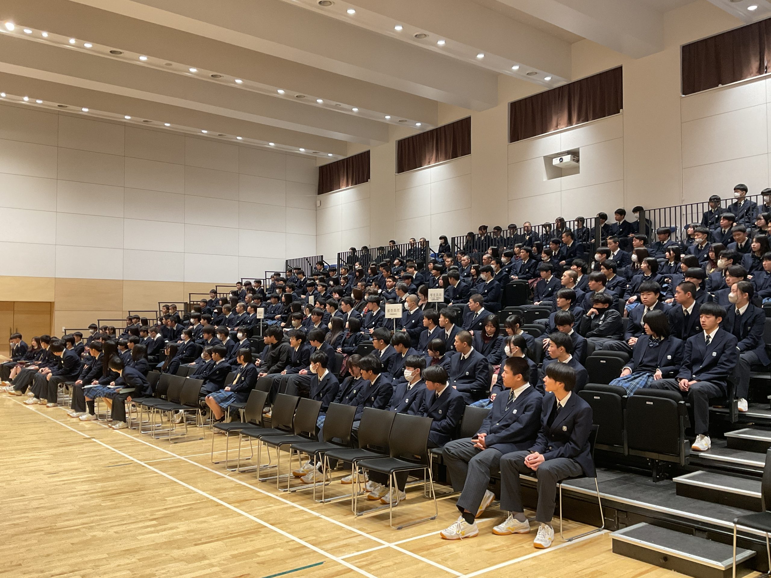 発表生徒達は、それぞれ福祉・介護の場での「あったらいいな」を実現させるために、どのようにしたらよいのかを考え、作成したイメージ図等を投影しながら工夫を凝らしたプレゼンテーションを行っていました。今回はコンテスト形式をとるため、各クラスの学級委員長、髙倉校長先生、学年主任の渡部先生、また、現場目線からもご覧いただくため、生活介護事業所 eachの佐藤様、札幌南区第2地域包括支援センターの和田様と加藤様の計13名の方々にご審査いただきました。