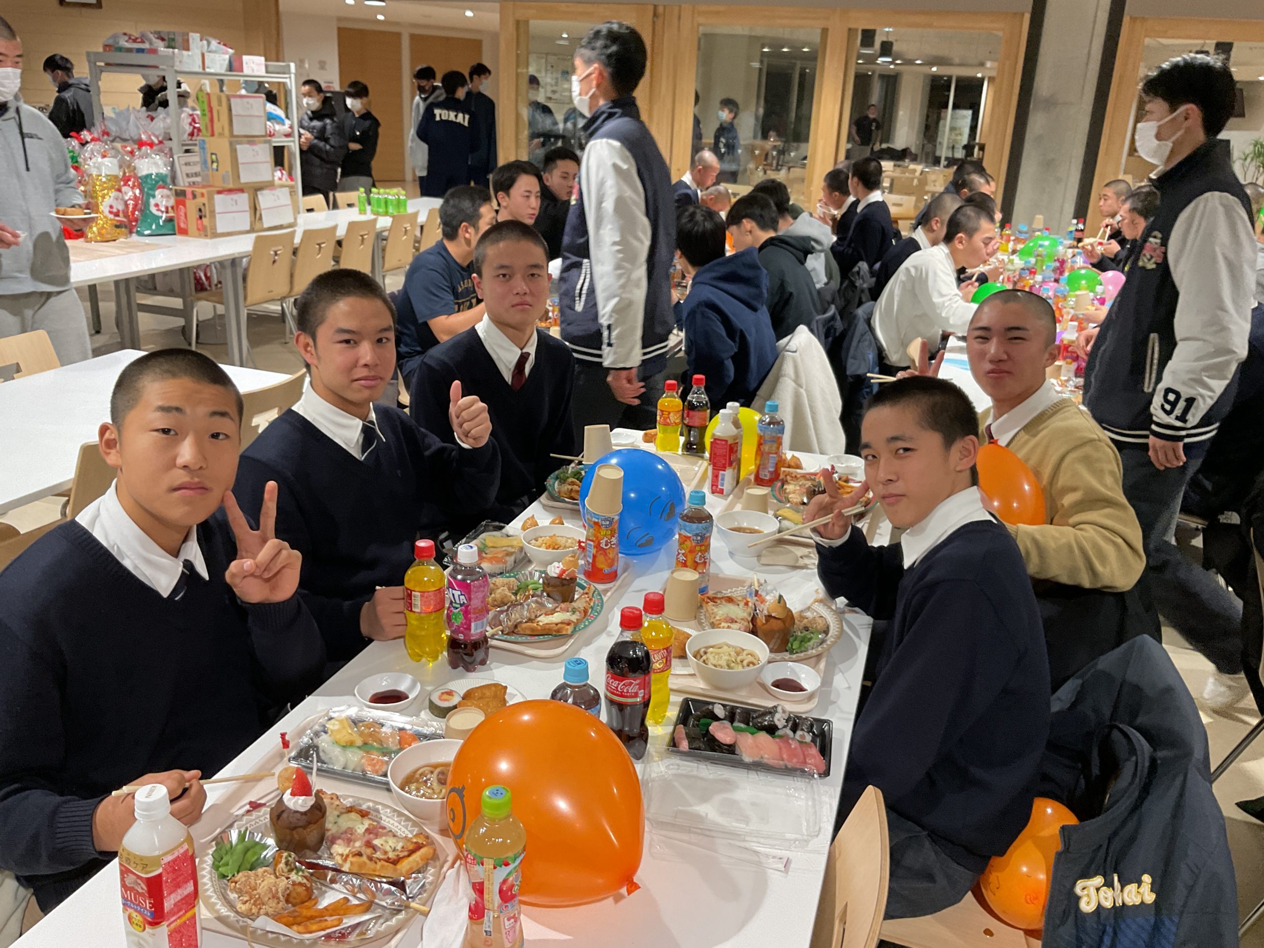 12月16日(土)、本校の寮である札幌望星塾においてクリスマス会が行われました。日頃は厳しい練習に励んでいる塾生ですが、食堂ではクリスマス特別メニューが提供され、プレゼント抽選会や部活対抗eスポーツ大会などにより、この日は楽しいひとときを過ごすことができていたようです。